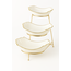 Deze stijlvolle 3-delige etagère van Queens Porcelain combineert elegantie met praktisch gebruik. De witte porseleinen schalen met subtiele golvende randen rusten op een stevige metalen standaard. Dankzij het verfijnde design en de glanzende afwerking is deze etagère perfect voor het serveren van hapjes, fruit of desserts. Verkrijgbaar met gouden of zilveren accenten voor een luxe uitstraling die past bij elk interieur.