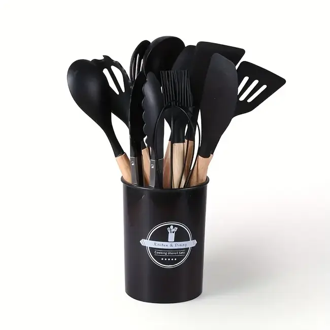 Kook met vertrouwen en stijl dankzij deze hoogwaardige siliconen keukengerei set met houten handgrepen. De tools zijn hittebestendig tot 230°C (446°F), vlekbestendig en veilig te gebruiken op antiaanbakpannen. De zachte siliconen kop voorkomt krassen en deuken, waardoor je kookgerei langer meegaat. De houten handgrepen zijn niet alleen comfortabel in gebruik, maar beschermen ook tegen hitte. Dankzij de roestvrijstalen kern zijn de spatels en lepels extra stevig, buigen ze niet en behouden ze hun vorm – zelfs bij intensief gebruik.