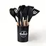 Deze set bevat een praktische selectie van onmisbare keukenhulpen, inclusief een houder voor nette opslag, een siliconen mat en handige ophanghaken.