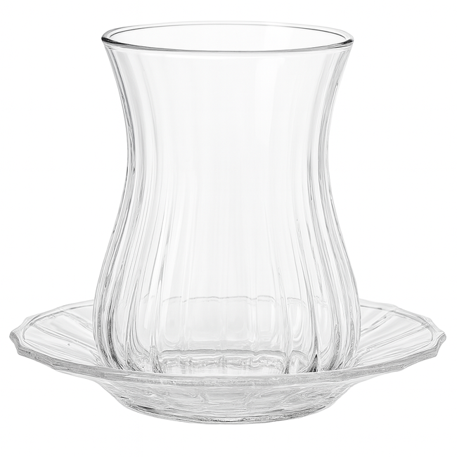 Set van 12 delen – 6 theeglazen (170 ml) + 6 bijpassende onderzetters