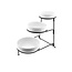 Breng stijl en functionaliteit samen met deze 3 laagse etagere, compleet met deksels en een elegant metalen rek. De ronde kommetjes zijn gemaakt van hoogwaardig keramiek. De matt zwarte metalen rek biedt een moderne en ruimtebesparende presentatie, perfect voor op tafel, in de keuken of op een buffet.