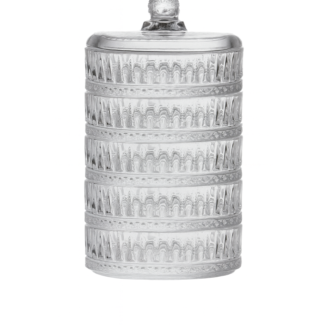 De Almina Elisa 5-laags glazen kom met deksel is een elegante en praktische toevoeging aan elke tafel of keuken. Deze stapelbare glazen kommen combineren een luxe uitstraling met maximale functionaliteit. Perfect voor het bewaren of serveren van patisserie, koekjes, snoepjes, noten of kleine hapjes. Het geslepen glasontwerp en de decoratieve knop zorgen voor een stijlvolle presentatie bij elke gelegenheid.