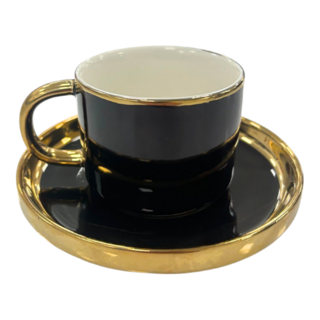 De Almina Luxe Espressoset is een perfecte combinatie van modern zwart en verfijnde gouden details. De set bestaat uit 6 espressokopjes en 6 bijpassende schotels, speciaal ontworpen voor de ultieme espresso-ervaring. Het hoogwaardige porselein en de elegante afwerking maken deze set ideaal voor dagelijks gebruik én voor speciale momenten. Een schitterende toevoeging aan je serviescollectie of als luxe cadeau voor koffieliefhebbers.