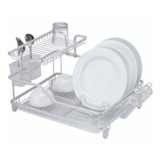 Dit Bavary afdruiprek in zilver is ontworpen om je keuken zowel praktisch als stijlvol in te richten. Dankzij de duurzame aluminium constructie blijft het rek stevig en roestvrij, terwijl de zilverkleurige afwerking zorgt voor een tijdloze uitstraling. Het 2-laags ontwerp biedt voldoende ruimte voor borden, kommen, glazen en kopjes. Met de aparte bestekhouder en glashouder blijft alles overzichtelijk. De uitneembare lekbak vangt water op en maakt schoonmaken eenvoudig. Ideaal voor dagelijks gebruik en een nette keuken.