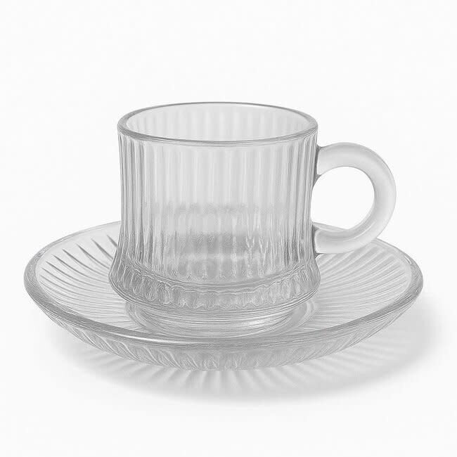 De glazen zijn vervaardigd uit helder, hittebestendig glas dat ideaal is voor dagelijks gebruik. De onderzetters beschermen je tafel tegen warmte en vocht, en tillen elk koffiemoment naar een hoger niveau.