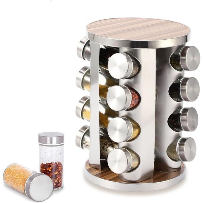 Bavary | Kruidencarousel Zilver & Houtaccenten 16 Potjes - Livani