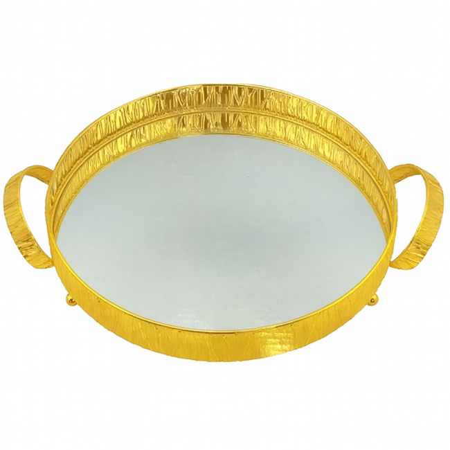 Dit ronde spiegel dienblad combineert luxe met een modern, verfijnd design. De spiegelende bodem zorgt voor een chique uitstraling, terwijl de subtiel gegraveerde zijkanten en stevige handgrepen het dienblad zowel praktisch als decoratief maken. Perfect voor koffie, thee, hapjes of als stijlvol display voor parfum, kaarsen of sieraden. Verkrijgbaar in zilver of goud.