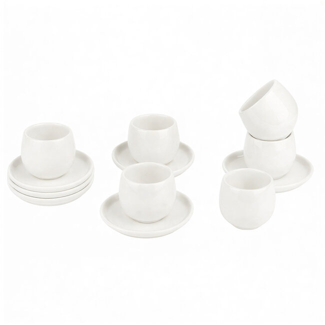 Het hoogwaardige porselein zorgt voor een luxe uitstraling en langdurige kwaliteit. De ronde vorm ligt prettig in de hand en de bijpassende schoteltjes zorgen voor een nette presentatie en bescherming van het tafeloppervlak.