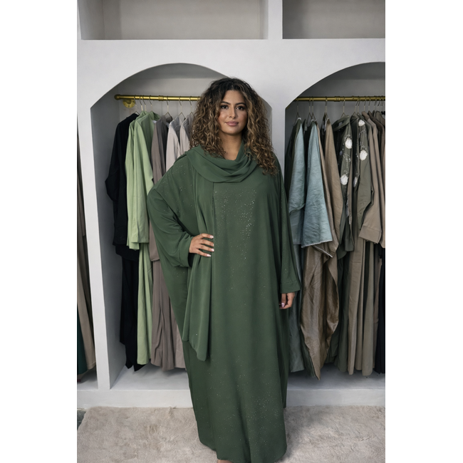 De Flora Abaya combineert eenvoud met een vleugje luxe. De abaya is afgewerkt met fijne glitteraccenten die subtiel over de stof zijn verdeeld en zorgen voor een zachte, chique glans. Dit geeft het ontwerp net dat extra detail zonder opvallend te zijn.