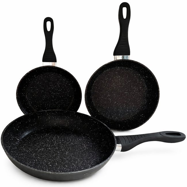 De Bavary 3-Delige Pannenset bestaat uit drie koekenpannen met diameters van 20 cm, 24 cm en 28 cm. Deze complete set biedt voor iedere maaltijd de juiste maat, van kleine porties tot grotere gerechten.