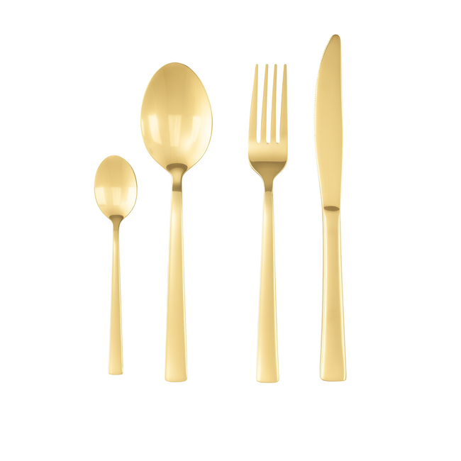 Voeg een vleugje luxe toe aan je eettafel met de 24-delige gouden bestekset van Hakal. Deze stijlvolle set is gemaakt van hoogwaardig roestvrij staal en afgewerkt met een elegante gouden coating. Perfect voor 6 personen en geschikt voor zowel dagelijks gebruik als speciale gelegenheden.