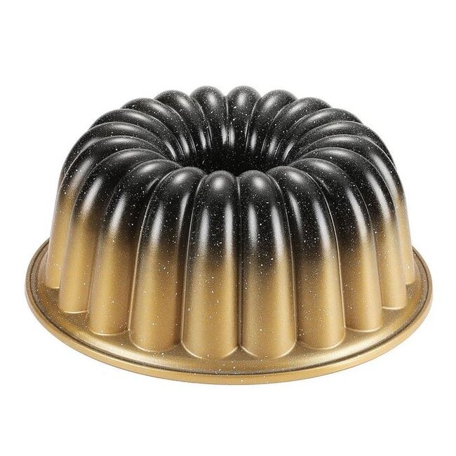 Geef jouw baksels een elegante upgrade met de Hakal Tulband bakvorm. Gemaakt van hoogwaardig gietaluminium en voorzien van een antiaanbaklaag, zorgt deze vorm voor perfect gevormde cakes die moeiteloos uit de vorm glijden. De schitterende gouden afwerking met zwarte accenten maakt deze vorm niet alleen functioneel, maar ook een echte blikvanger in de keuken. Met een inhoud van 2,3 liter en een diameter van 23 cm is deze tulbandvorm ideaal voor klassieke cakes of creatieve varianten met bijvoorbeeld karamel, appel of kaneel. De robuuste constructie garandeert een gelijkmatige garing, terwijl het elegante patroon zorgt voor een ‘wauw’-effect bij elke bakbeurt.