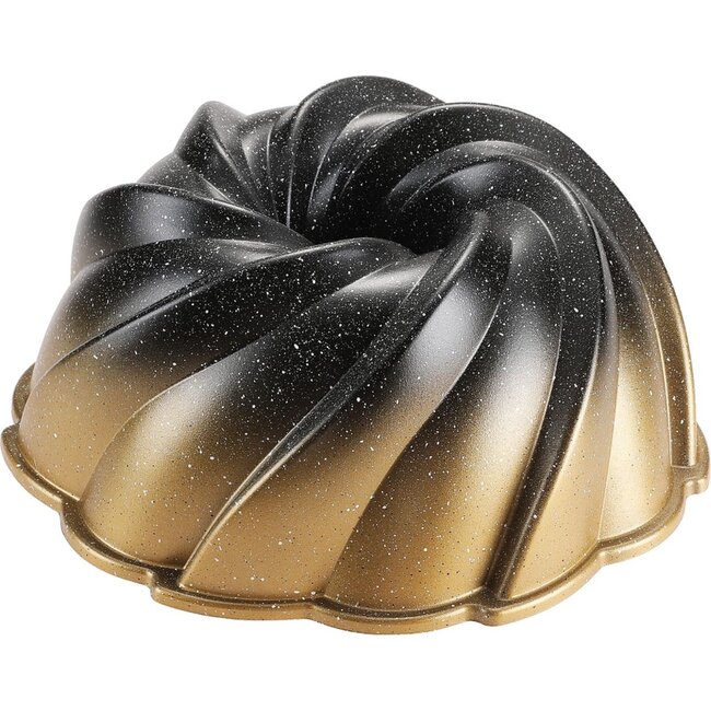 Hakal Tulband bakvorm van gietaluminium met antiaanbaklaag. Diameter 23 cm, goudkleurig met zwarte accenten. Perfect voor elegante cakes met moeiteloze loslating en indrukwekkend resultaat. Lees meer.