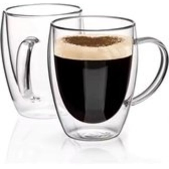 Geniet van je favoriete drankjes in stijl met deze set van 2 dubbelwandige glazen van 350ml. Dankzij het innovatieve dubbelwandige ontwerp blijven warme dranken langer heet en koude dranken langer koel, zonder dat je handen warm worden of condens ontstaat aan de buitenkant. De glazen zijn gemaakt van hoogwaardig hittebestendig glas en zijn daardoor zowel licht als sterk. Perfect voor koffie, thee, cappuccino, ijskoffie of desserts. Ze geven een zwevend effect aan je drankje en voegen een moderne touch toe aan elk servies.