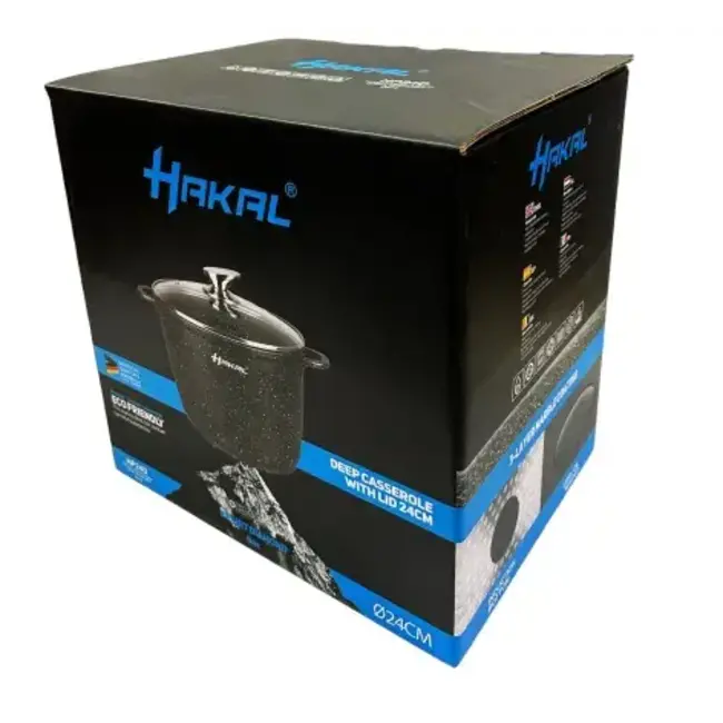 De pan combineert functionaliteit met een stijlvol design. Het meegeleverde glazen deksel maakt het eenvoudig om het kookproces te volgen en helpt om smaken en sappen optimaal te behouden. Hakal toont ook zijn betrokkenheid bij het milieu, met claims als "ECO FRIENDLY" en "LESS CO2 EMMISSION".