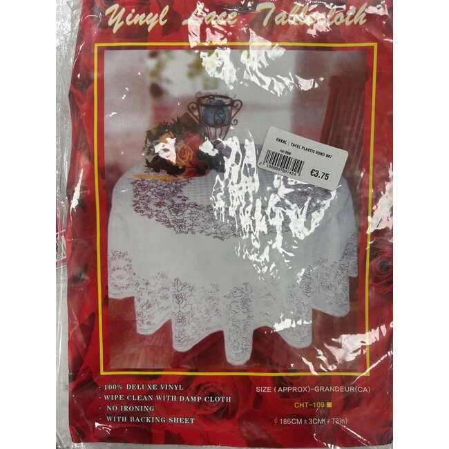 Geef je eettafel een elegante en frisse uitstraling met dit witte ronde tafelkleed, voorzien van een verfijnd bloemenpatroon. Gemaakt van 100% deluxe vinyl met een zachte backing sheet voor extra bescherming van je tafelblad. Het tafelkleed is water- en vlekbestendig, waardoor het ideaal is voor dagelijks gebruik én speciale gelegenheden. Dankzij het onderhoudsvriendelijke materiaal neem je het eenvoudig af met een vochtige doek.