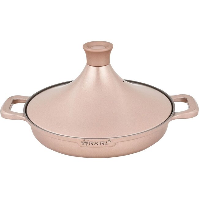 De Saffron Tajine is ontworpen volgens traditionele lijnen, met een conisch deksel dat zorgt voor optimale stoomcirculatie en gelijkmatige garing. Hierdoor blijven smaken behouden en blijven gerechten heerlijk sappig zonder verlies van voedingsstoffen. Gemaakt van geperst aluminium en voorzien van een driedubbele anti-aanbaklaag, is deze tajine ideaal voor bakken, braden, stomen, schroeien en stoven. De schaal heeft een diameter van 28 cm en is geschikt voor 4 tot 6 personen. Dankzij de stevige en hittebestendige constructie is de tajine bruikbaar op alle warmtebronnen, waaronder inductie, en kan hij veilig in de oven tot 260°C. Na gebruik kan hij eenvoudig in de vaatwasser worden gereinigd.