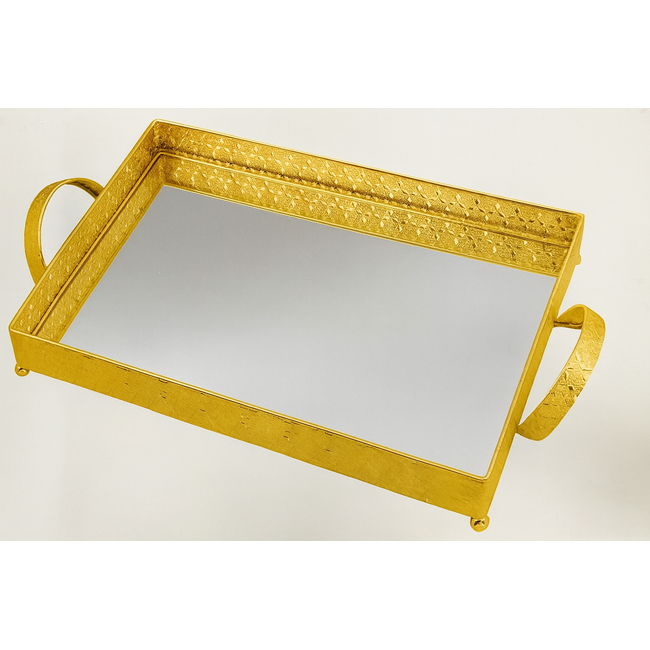 Dit Bavary spiegel dienblad brengt luxe en elegantie samen in één stijlvol ontwerp. De spiegelende bodem zorgt voor een chique uitstraling, terwijl de fijn gedetailleerde rand en stevige handgrepen het dienblad zowel praktisch als decoratief maken. Ideaal voor koffie, thee, hapjes of als luxe display voor parfum en sieraden. Verkrijgbaar in goud.