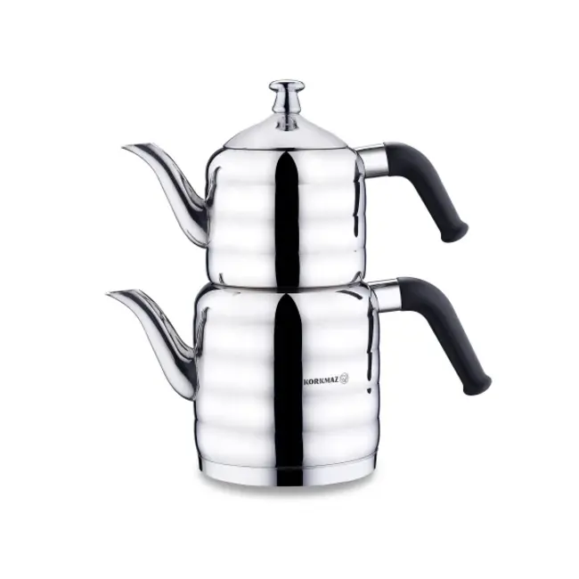 Geniet van traditionele theemomenten met de Korkmaz Mina Maxi RVS Theepot. Deze elegante set, bestaande uit een grote en een kleine pot, is vervaardigd uit hoogwaardig roestvrij staal en combineert duurzaamheid met stijl. Ideaal voor dagelijks gebruik én voor het serveren van thee aan gasten.