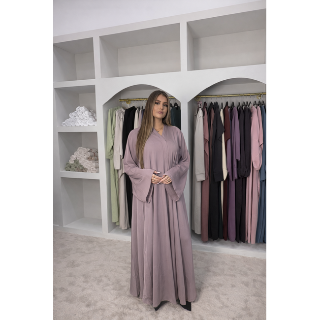 De lichte plooival en subtiele halsafwerking geven het ontwerp een elegante touch, terwijl het minimalistische karakter de abaya veelzijdig maakt voor verschillende gelegenheden. Een perfecte keuze voor vrouwen die houden van comfort, stijl en tijdloze klasse.