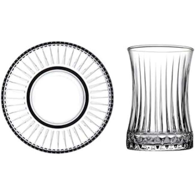 Set van 12 delen: 6 theeglazen (170 ml) + 6 bijpassende onderzetters