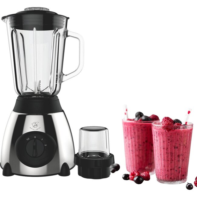 De Royal Swiss Blender met Grinder 1030W is een krachtige en veelzijdige keukenmachine die zowel als blender als grinder fungeert. Met een vermogen van 1030 watt en een glazen kom van 1,5 liter is deze blender ideaal voor het maken van smoothies, shakes, soepen, sauzen en zelfs het malen van koffiebonen of specerijen. De zes roestvrijstalen messen kunnen moeiteloos ijsblokjes crushen, waardoor je in een handomdraai verfrissende drankjes bereidt. Dankzij de twee snelheden en de pulse-functie heb je volledige controle over de textuur van je bereidingen. Het stijlvolle ontwerp met een roestvrijstalen behuizing past in elke moderne keuken. Bovendien is de blender eenvoudig te reinigen dankzij de vaatwasmachinebestendige onderdelen.