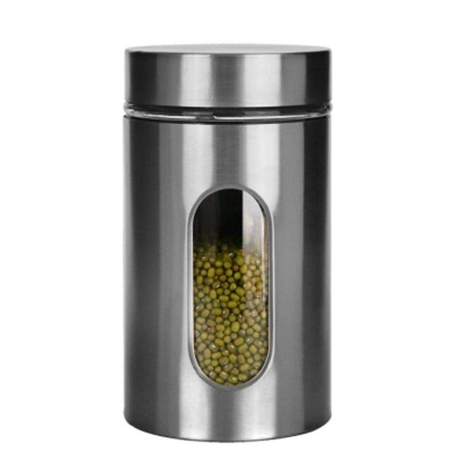 Bewaar je droge ingrediënten overzichtelijk en vers in de Trendmax RVS voorraadbus van 1000 ml. Deze handige voorraadpot is voorzien van een doorzichtig venster zodat je snel ziet wat erin zit. De schroefdeksel zorgt voor een goede afsluiting en houdt je producten langer vers. Met zijn robuuste RVS-design past deze voorraadbus in elke keuken. De pot is niet geschikt voor de vaatwasser; reinigen doe je met de hand.